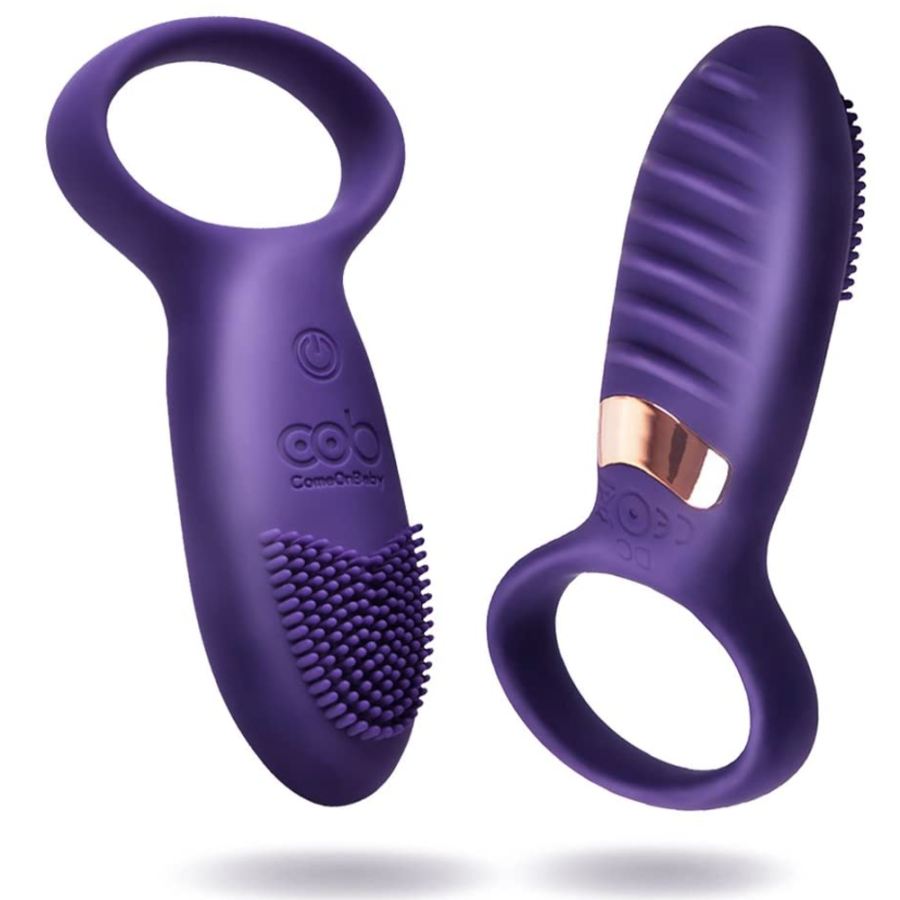 The Cob Silicone Vibrating Cock Ring's stretchy ring grips his penis and ridged stimulator massages his balls which may assist with stronger erections and increased stamina during sex, while the pleasure clitoral brush helps coax her to climax.Product Features: