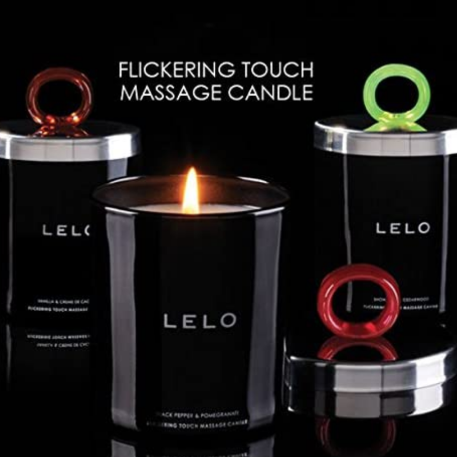 Immerse yourself in the radiant glow of the LELO Flickering Touch Massage Candle. Made from all natural soy wax, shea butter and apricot kernel oil, the lightly scented wax melts into an exquisite pool of warm and luxurious massage oil. The silky formula is specially designed to nourish and moisturize your skin with natural vitamin E, while the subtle fragrance excites your senses for the pleasures that lie ahead.